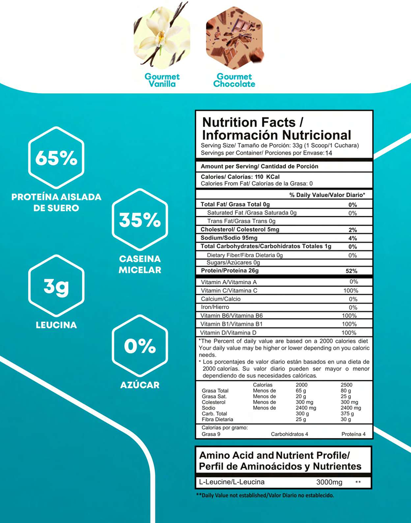 • Leucina, un aminoácido esencial clave en el proceso de síntesis muscular.